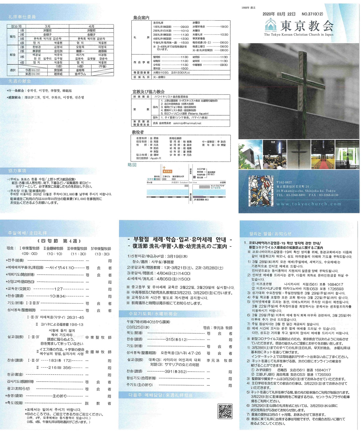 3) 聖歌隊や賛美チームは3月29日(主)までお休みさせていただきます。
