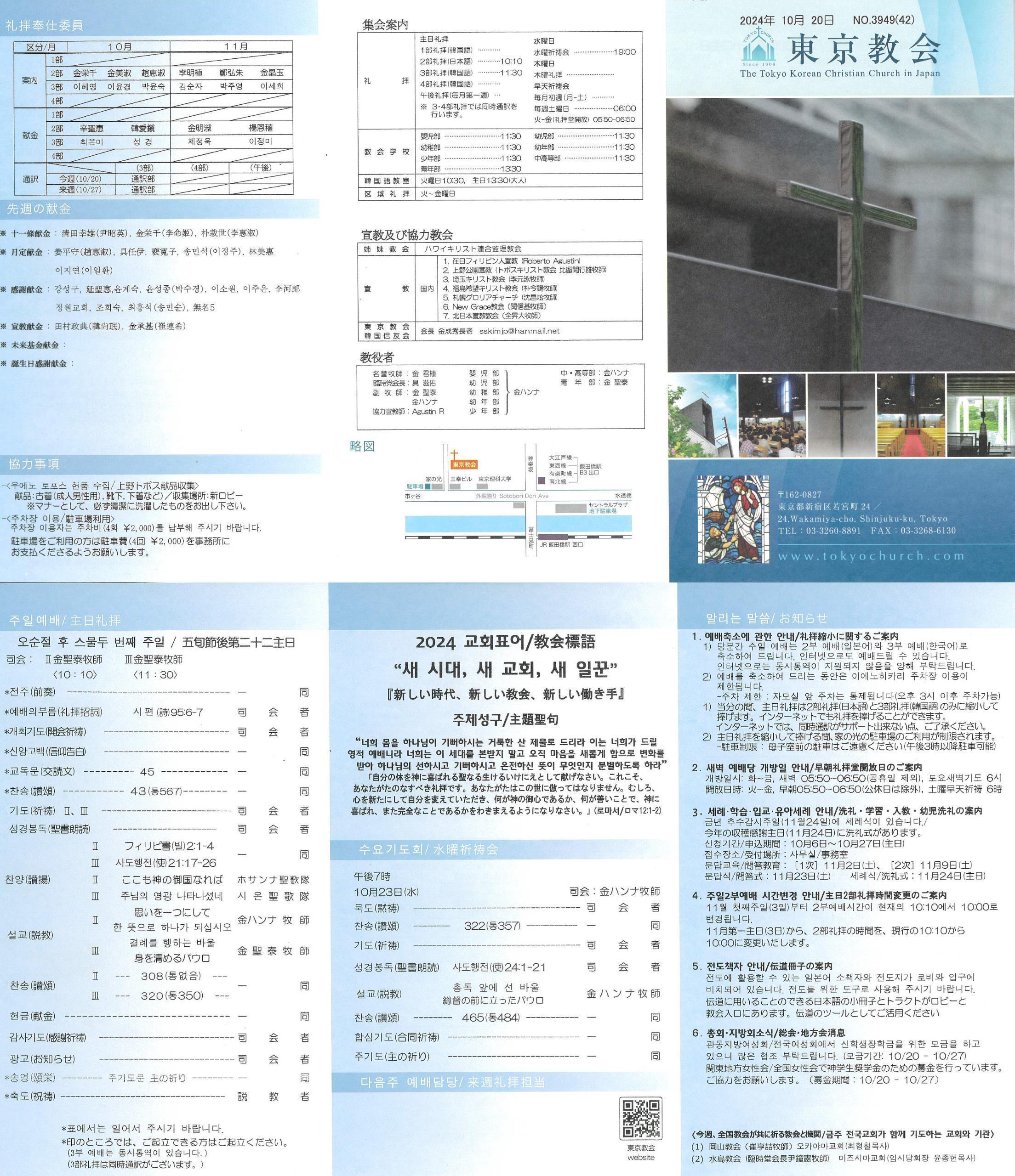 2024年 10月20日主日教会案内