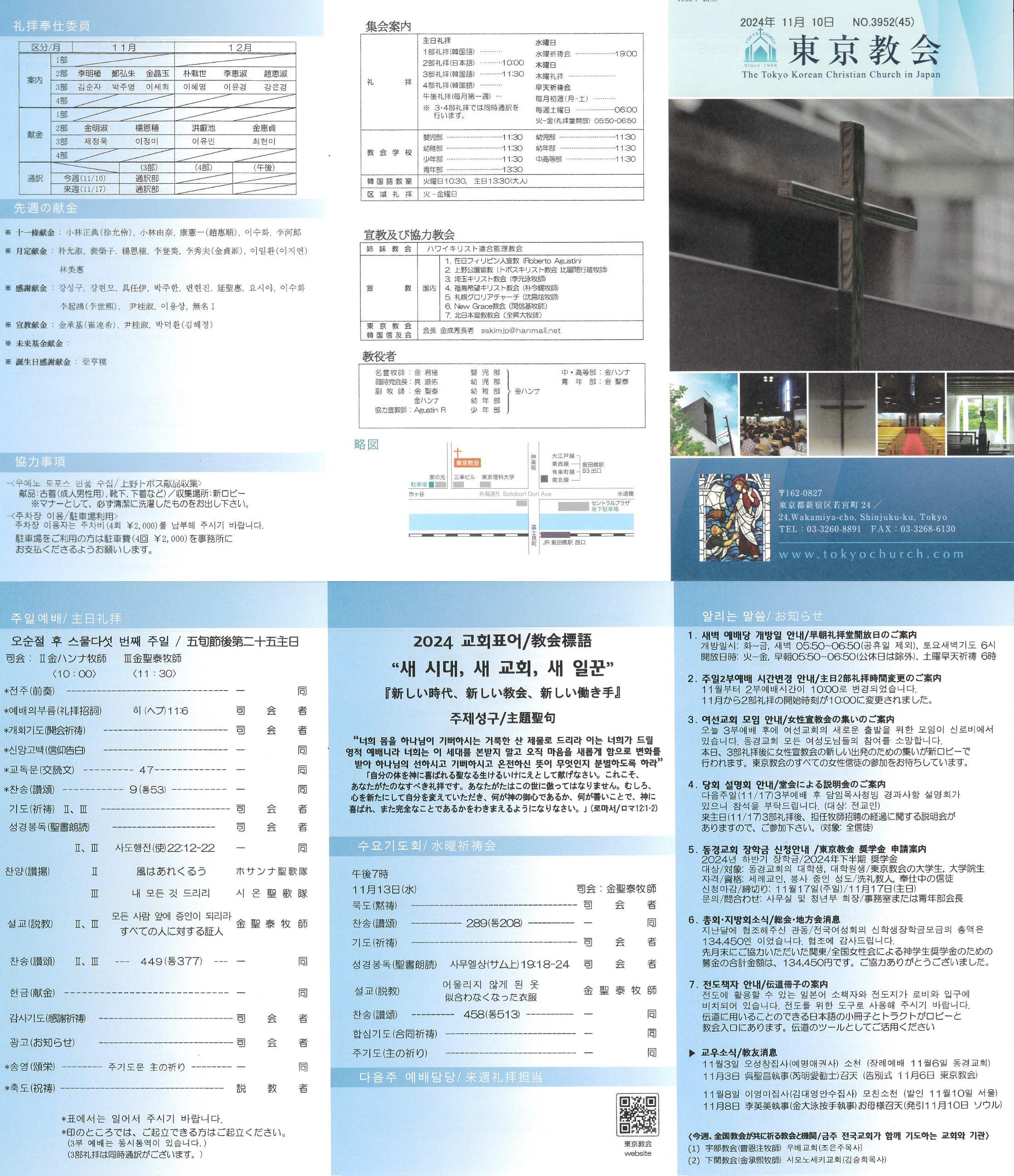 来主日(11/17)3部礼拝後、担任牧師招聘の経過に関する説明会がありますので、