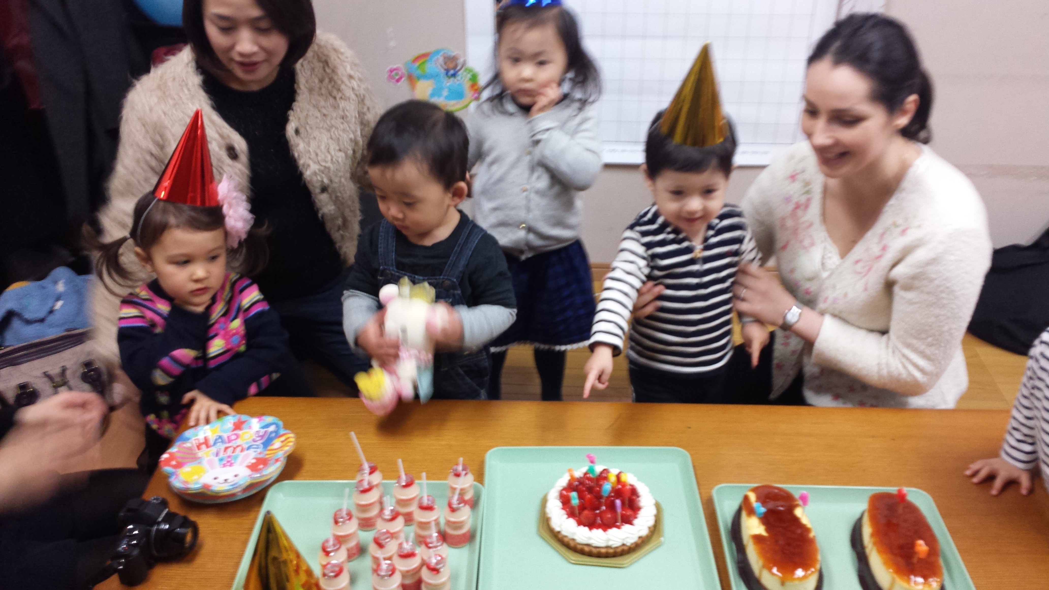 3명의 친구들의 생일 파티가 있었어요..
