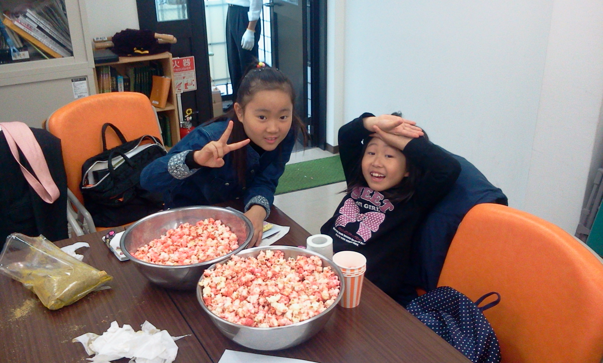 팝콘을 담아준 준경이와 보아.