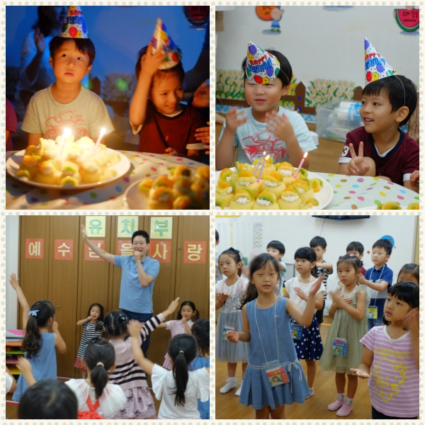 6월 7일 유치부 예배 및 생일파티 모습