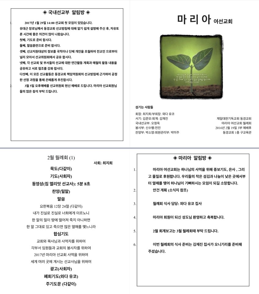 2017년도 마리아 월례회지 올립니다.