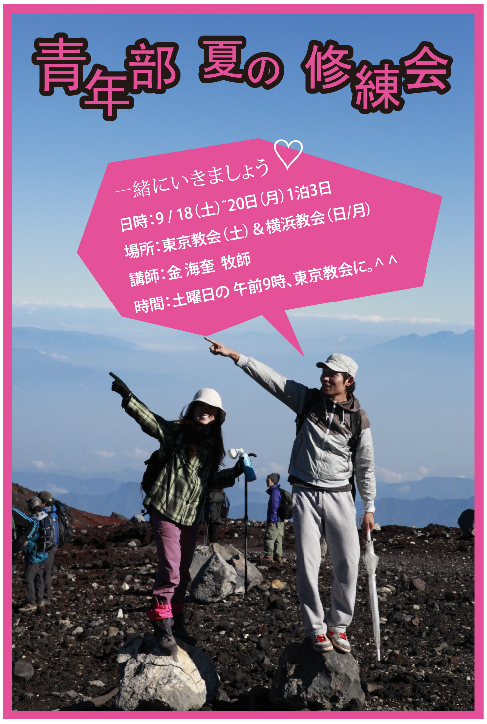 青年部の修練会が18日から20日まで東京教会・横浜教会で行われます。