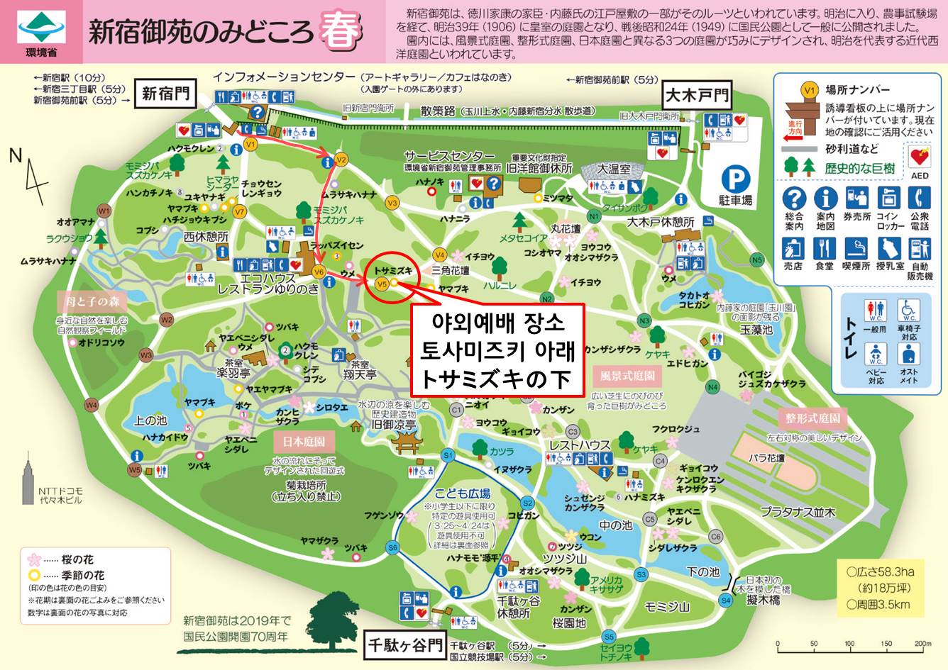 2)장소/場所:신주쿠교엔 삼각화단 근처/新宿御苑 三角花壇の付近