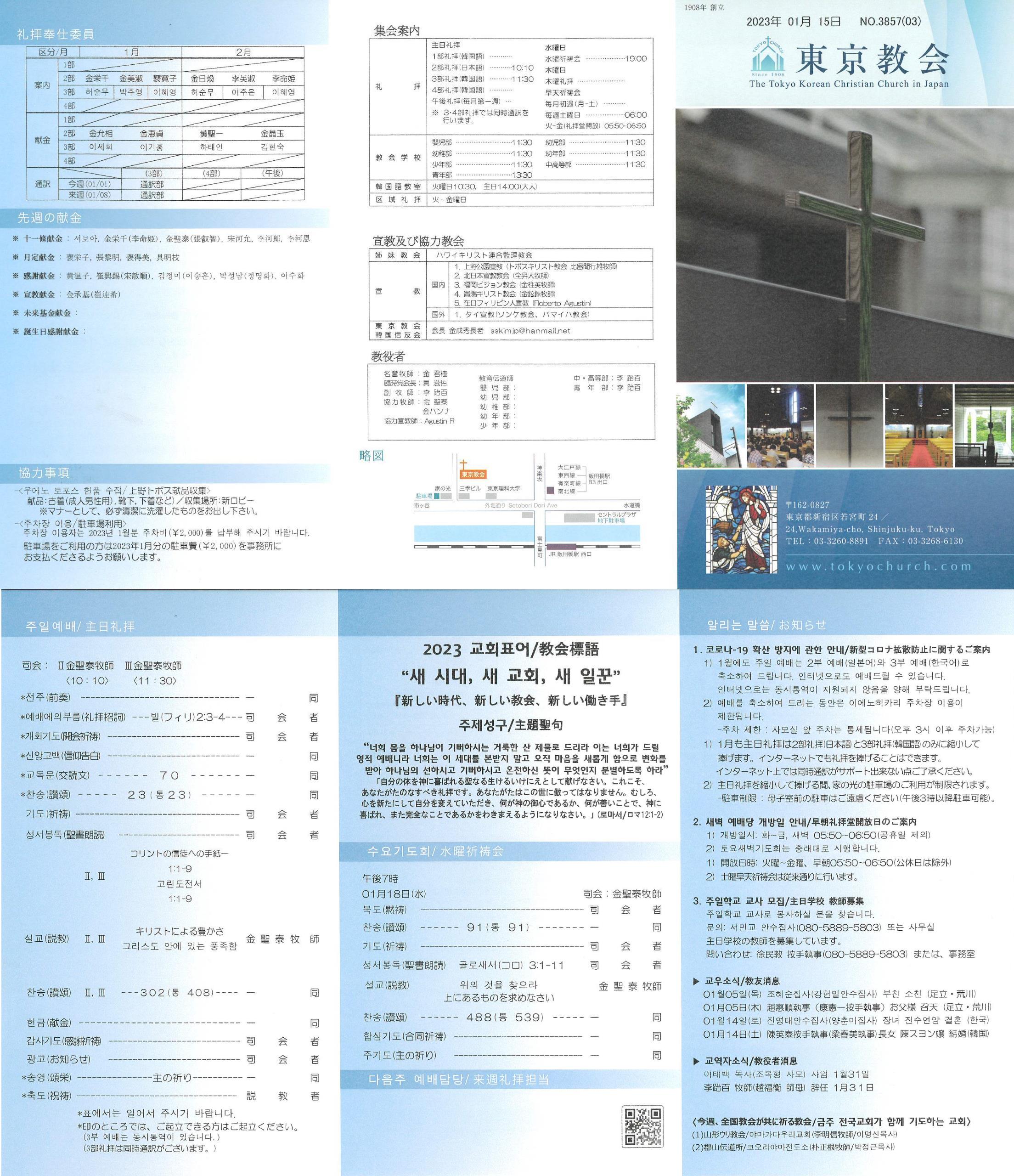 1) 1월에도 주일 예배는 2부 예배(일본어)와 3부 예배(한국어)로 축소하여 드립니다. 인터넷으로도 예배드릴 수 있습니다. 인터넷으로는 동시통역이 지원되지 않음을 양해 부탁드립니다.