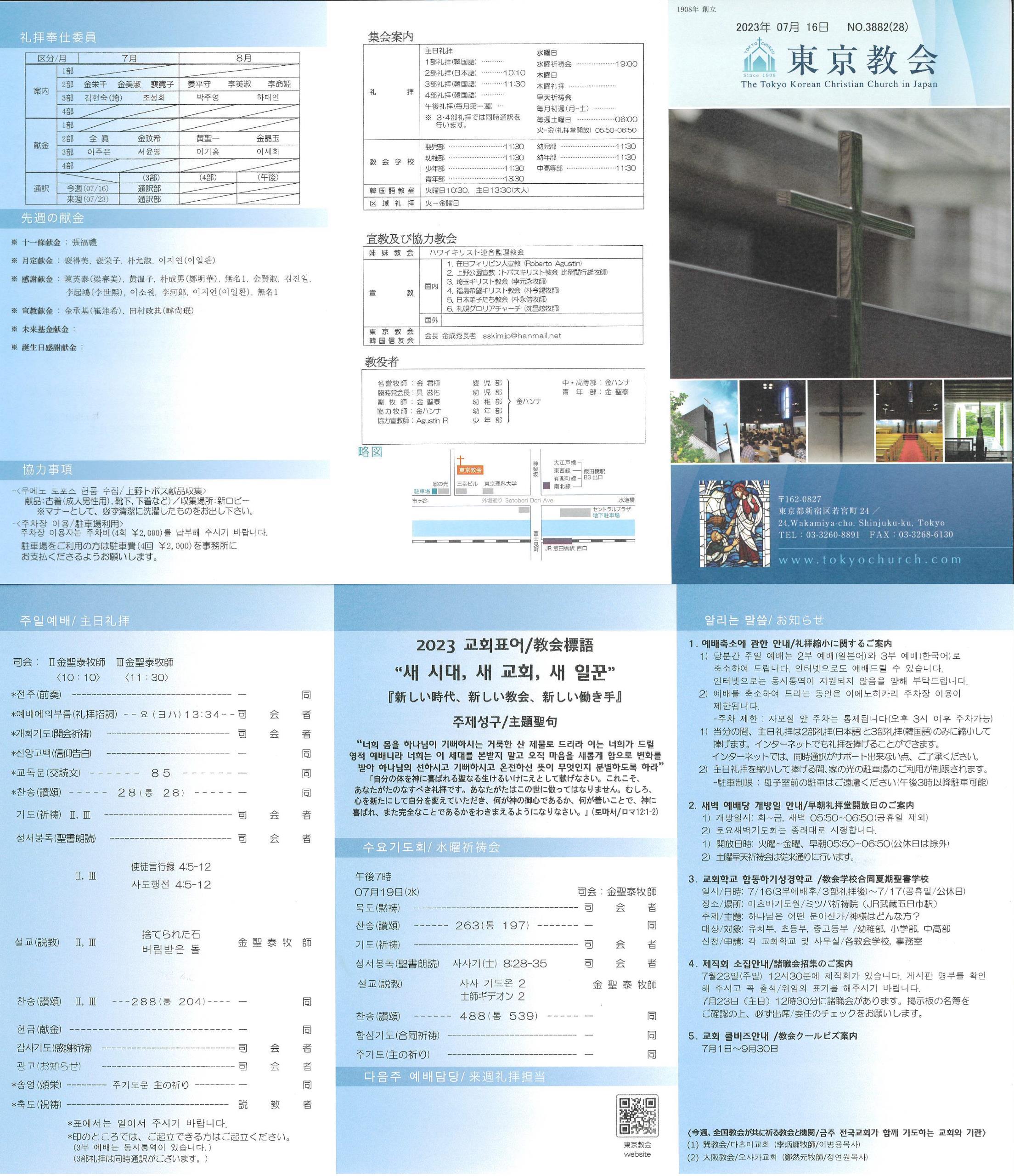 1) 당분간 주일 예배는 2부 예배(일본어)와 3부 예배(한국어)로 축소하여 드립니다. 인터넷으로도 예배드릴 수 있습니다. 인터넷으로는 동시통역이 지원되지 않음을 양해 부탁드립니다.