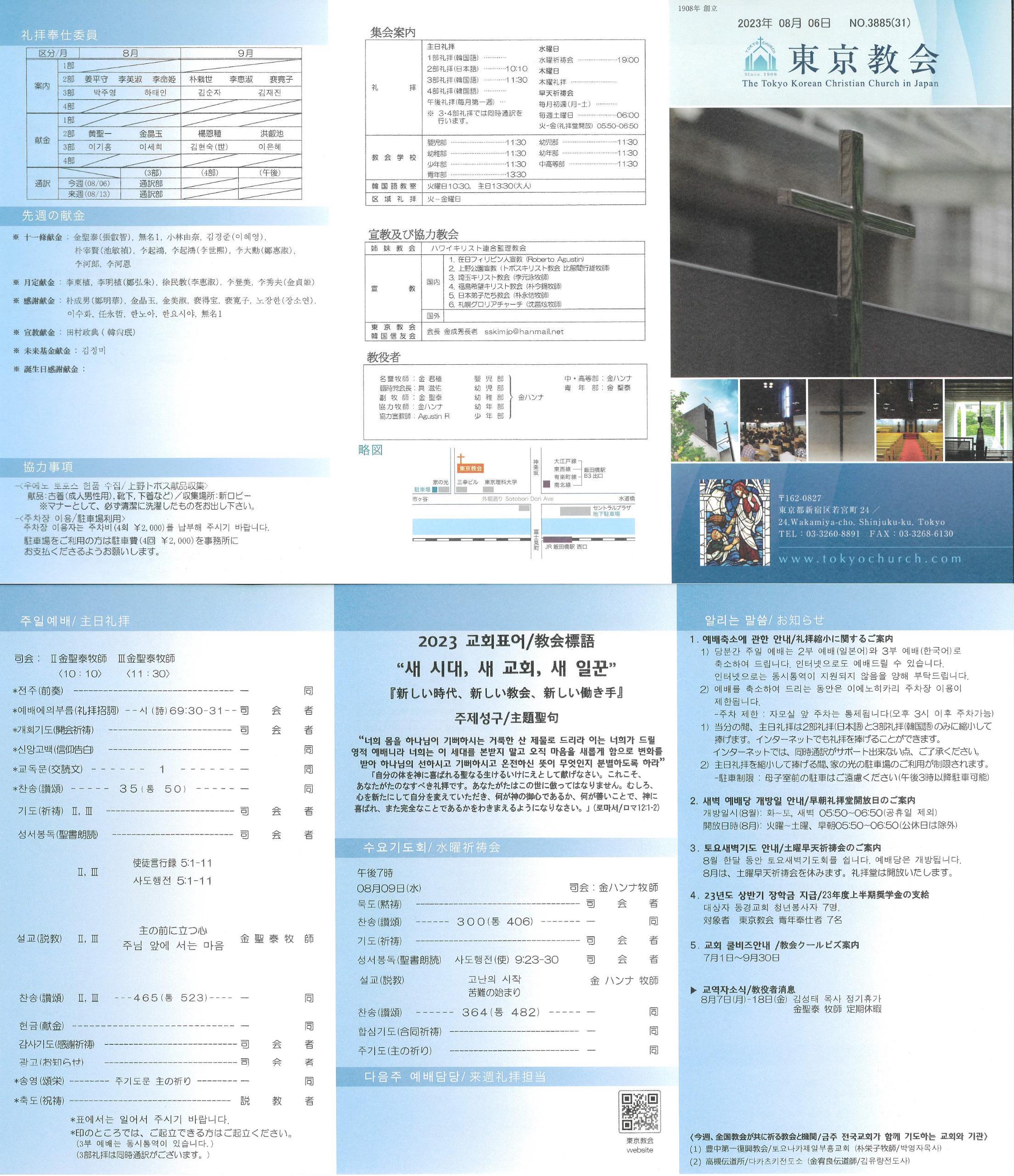1) 당분간 주일 예배는 2부 예배(일본어)와 3부 예배(한국어)로 축소하여 드립니다. 인터넷으로도 예배드릴 수 있습니다. 인터넷으로는 동시통역이 지원되지 않음을 양해 부탁드립니다.