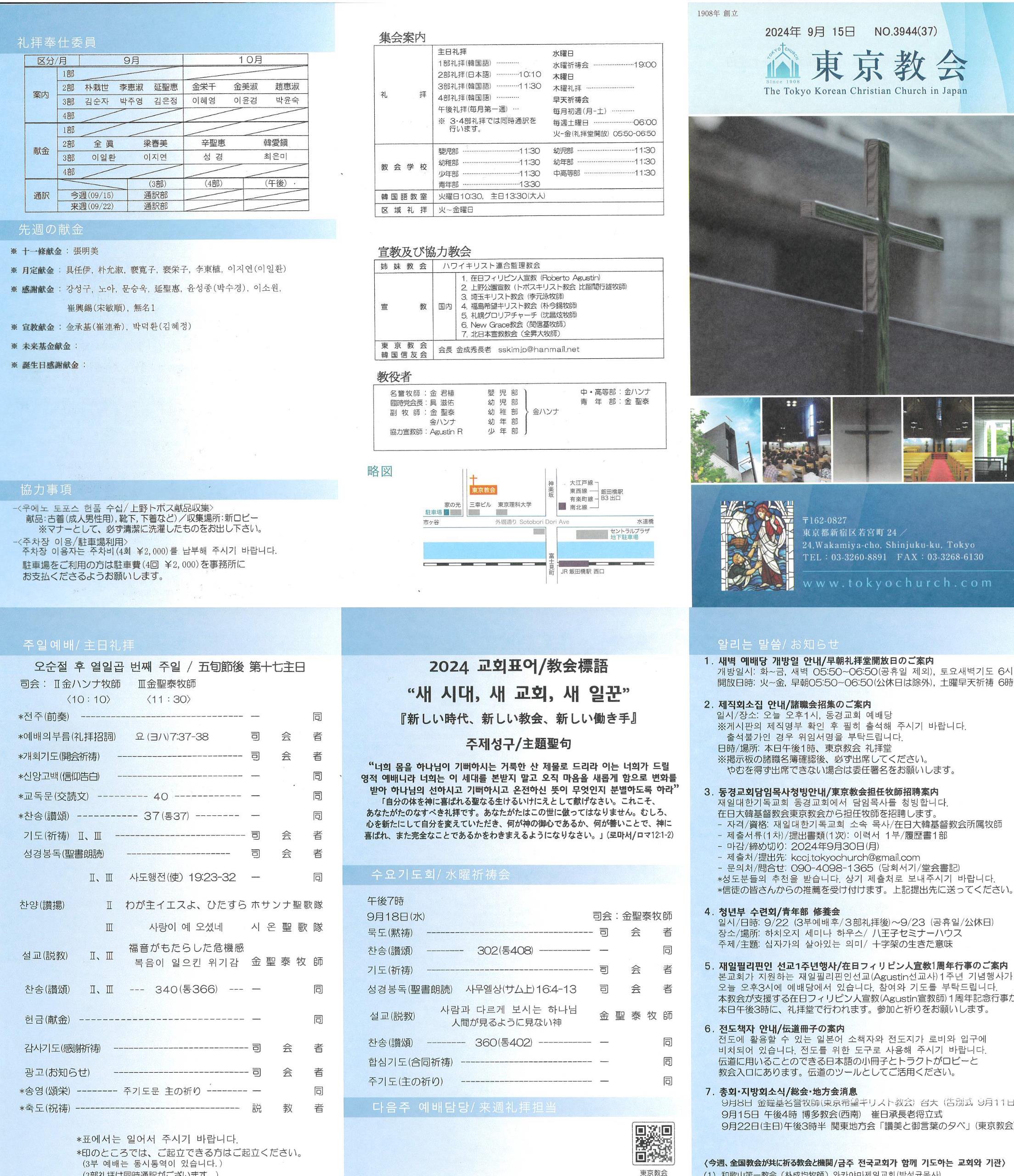 2024년 09월 15일주일 교회안내 |