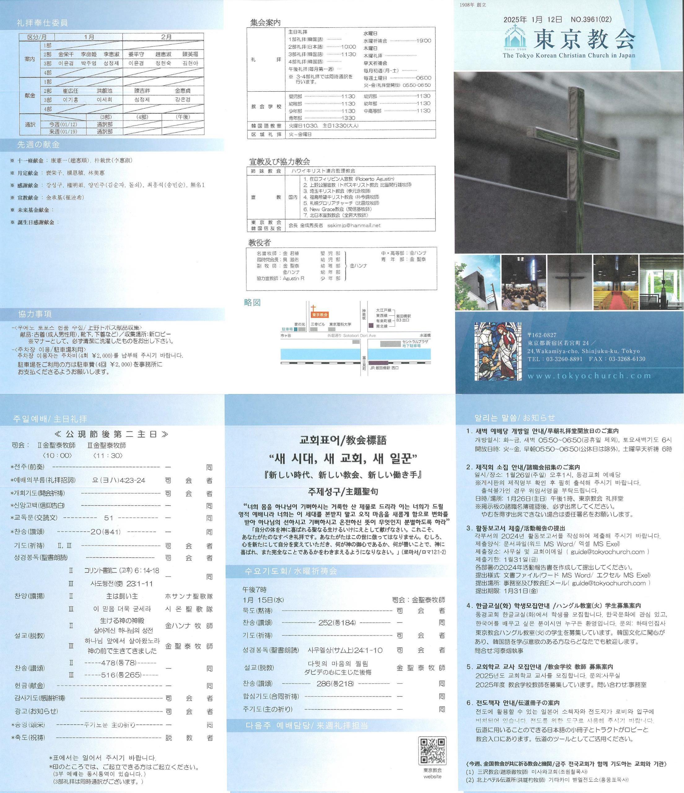 일시/장소: 1월26일(주일) 오후1시, 동경교회 예배당