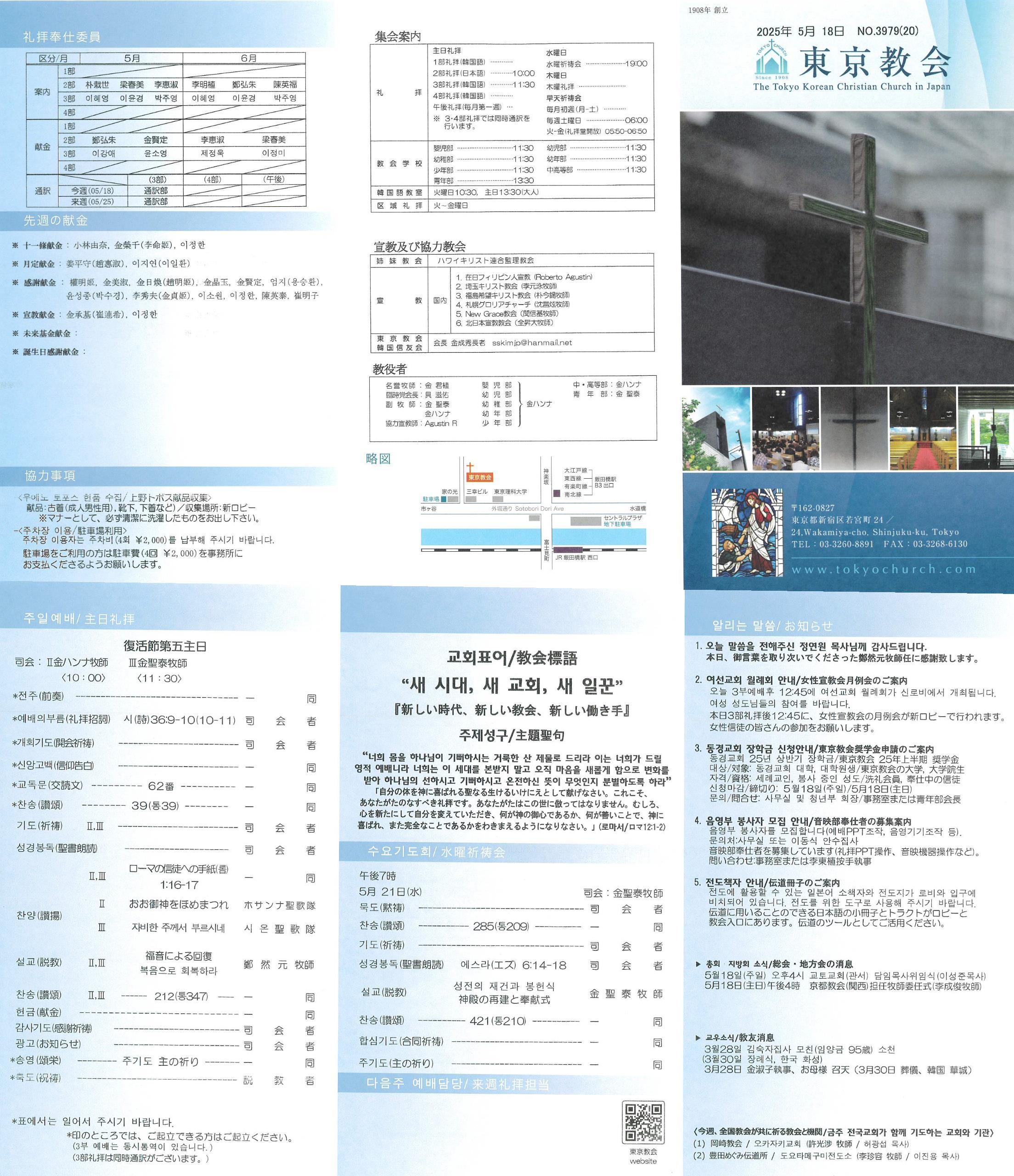 3. 동경교회 장학금 신청안내동경교회 25년 상반기 장학금대상: 동경교회 대학, 대학원생자격: 세례교인, 봉사 중인 성도신청마감: 5월18일(주일)문의: 사무실 및 청년부 회장