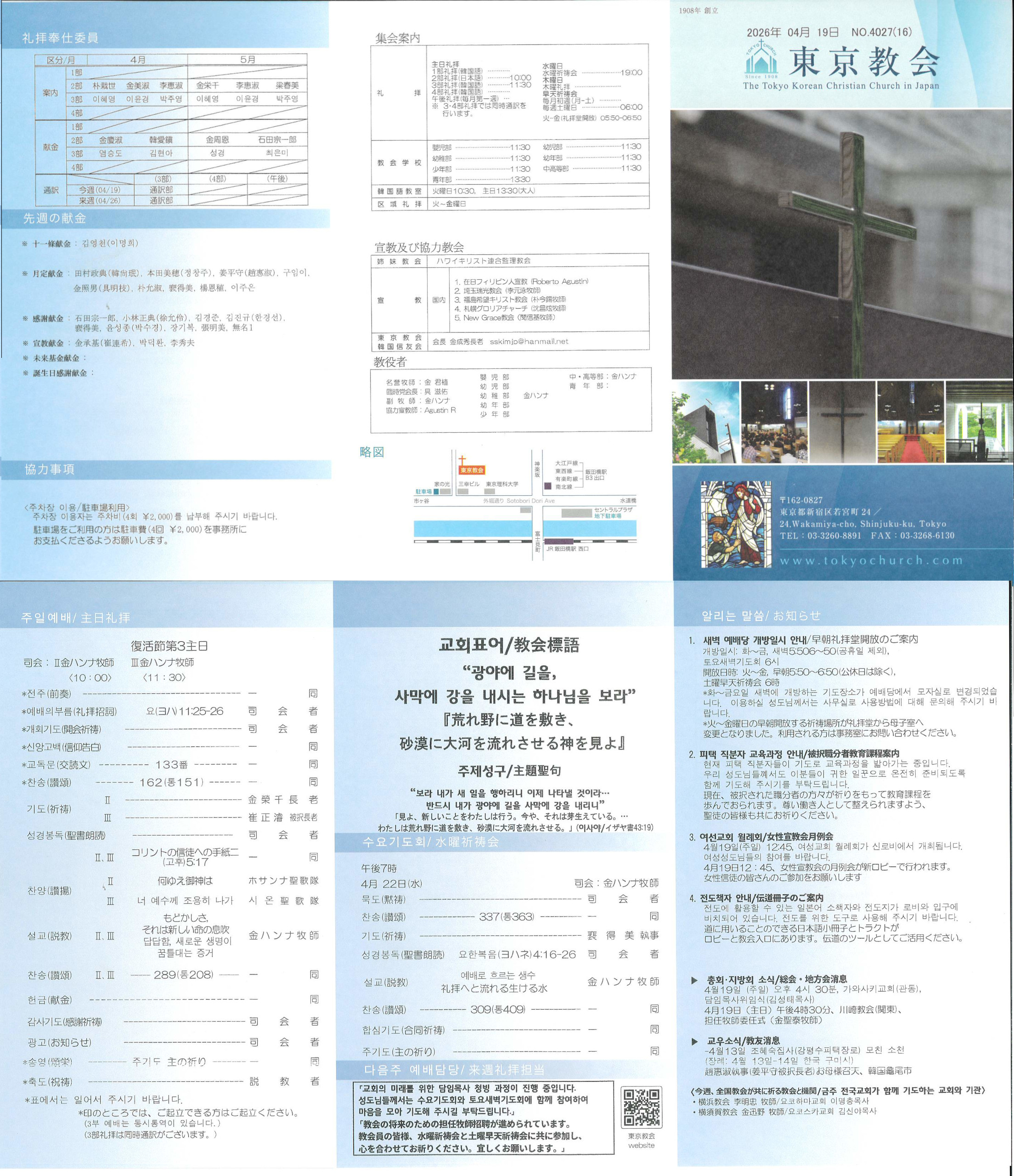 ▶ 총회・지방회 소식4월19일 (주일) 오후 4시 30분, 가와사키교회(관동), 담임목사위임식(김성태목사)