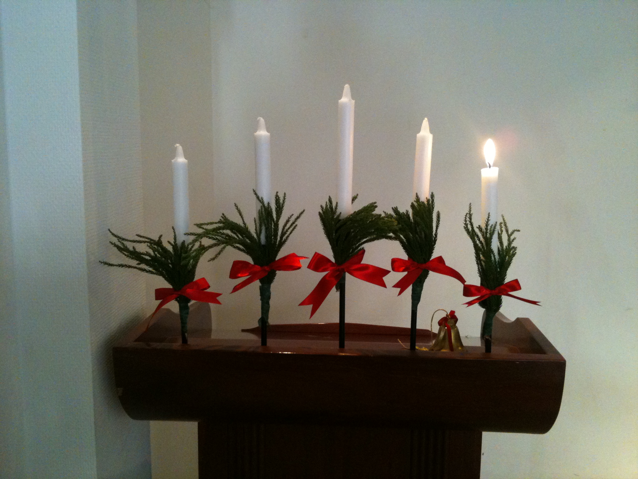 유년부실의 대강절 화환에 첫번째 촛불이 켜졌습니다.