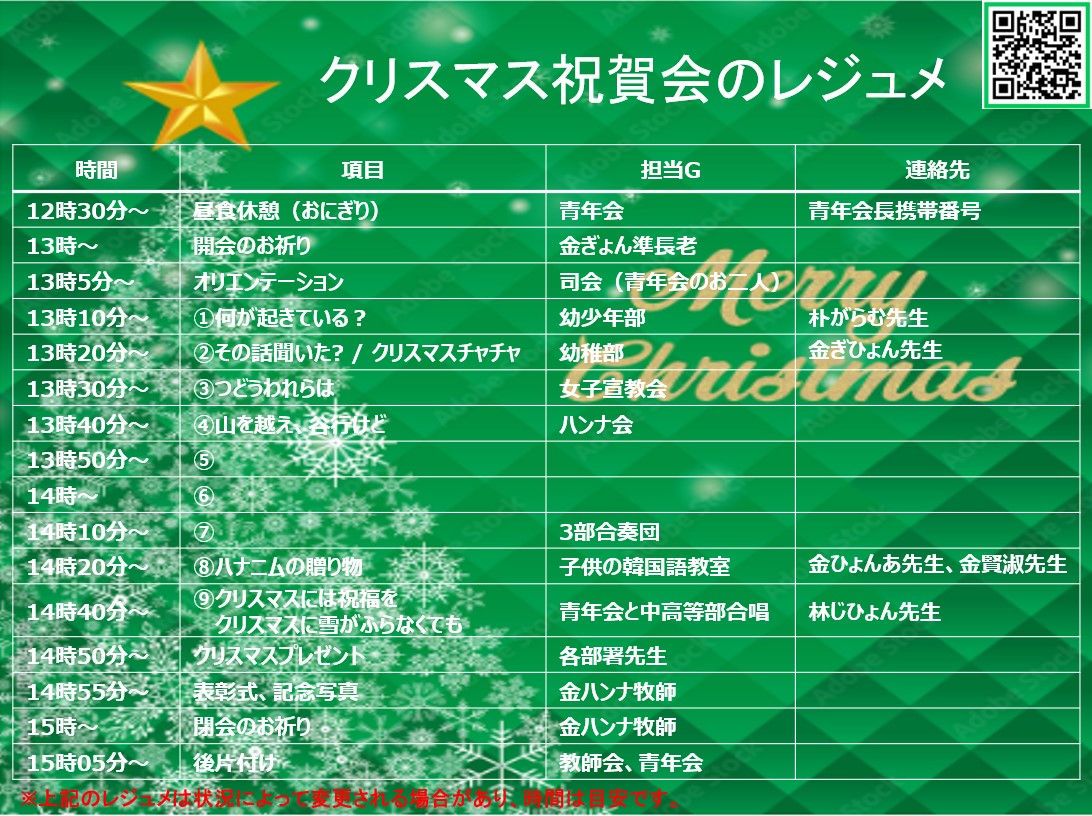 クリスマス祝賀会のレジュメ