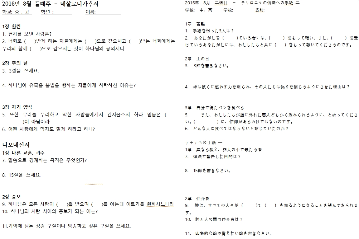 8월 셋째주 성경퀴즈