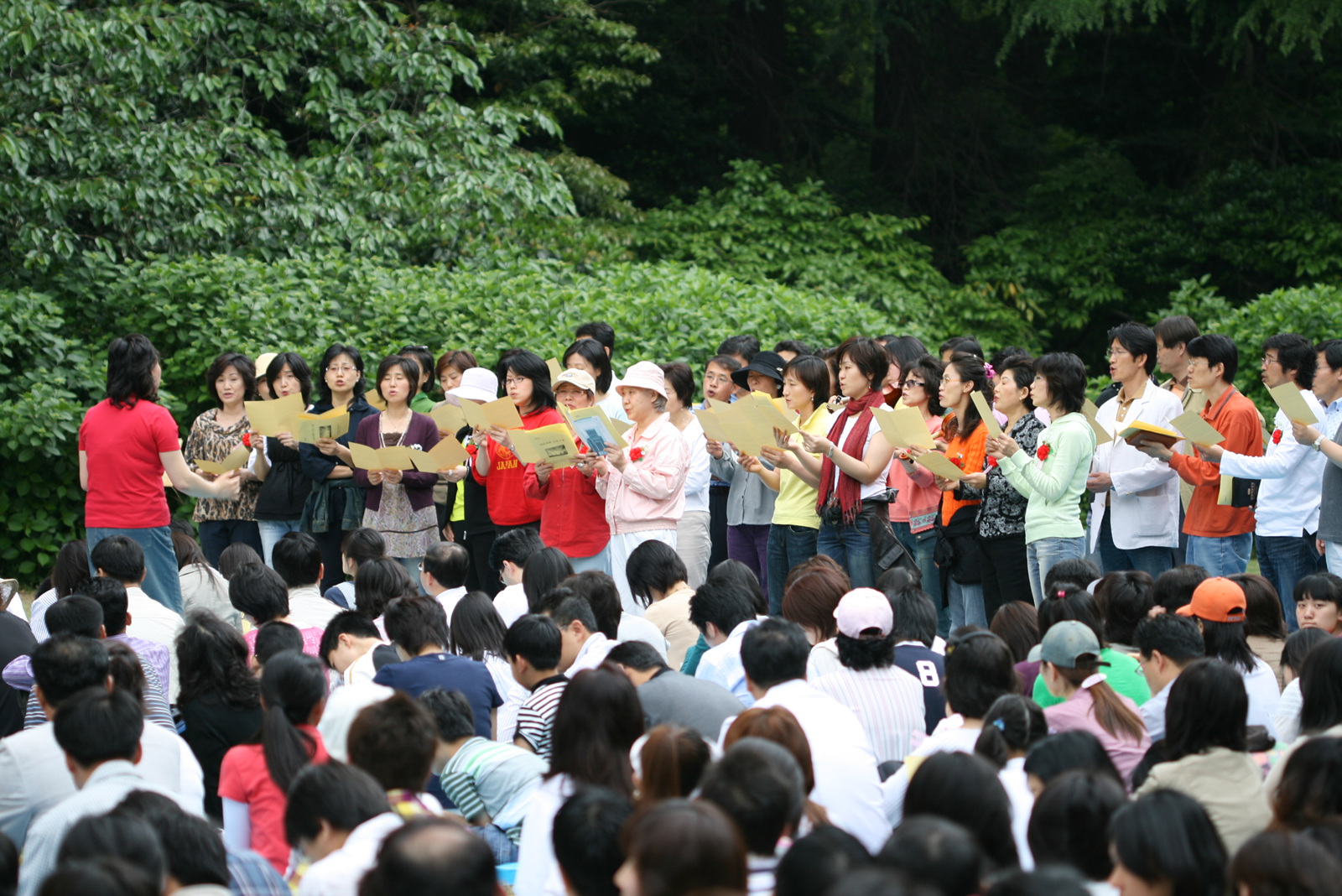 | -100 | 야외예배 모습 |
