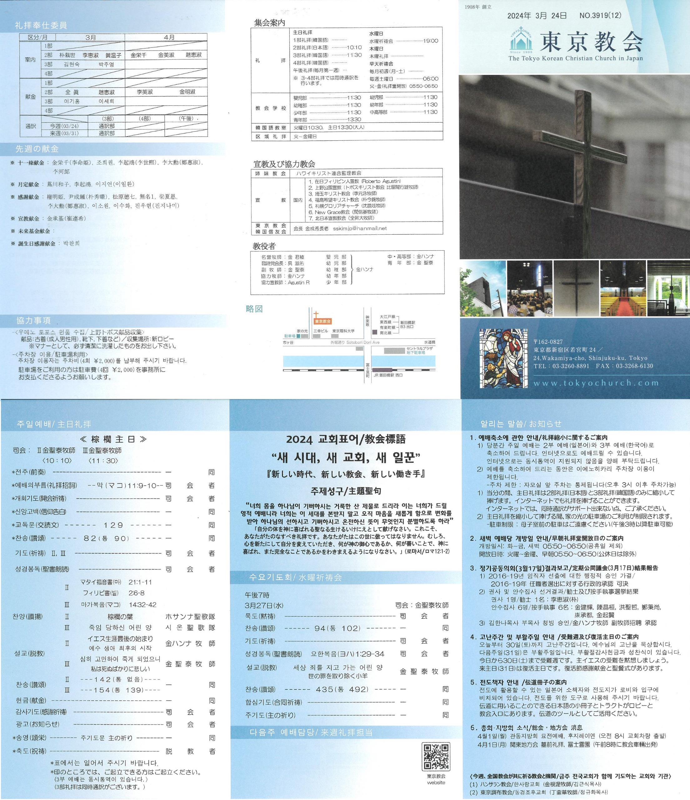 1) 당분간 주일 예배는 2부 예배(일본어)와 3부 예배(한국어)로 축소하여 드립니다. 인터넷으로도 예배드릴 수 있습니다. 인터넷으로는 동시통역이 지원되지 않음을 양해 부탁드립니다.