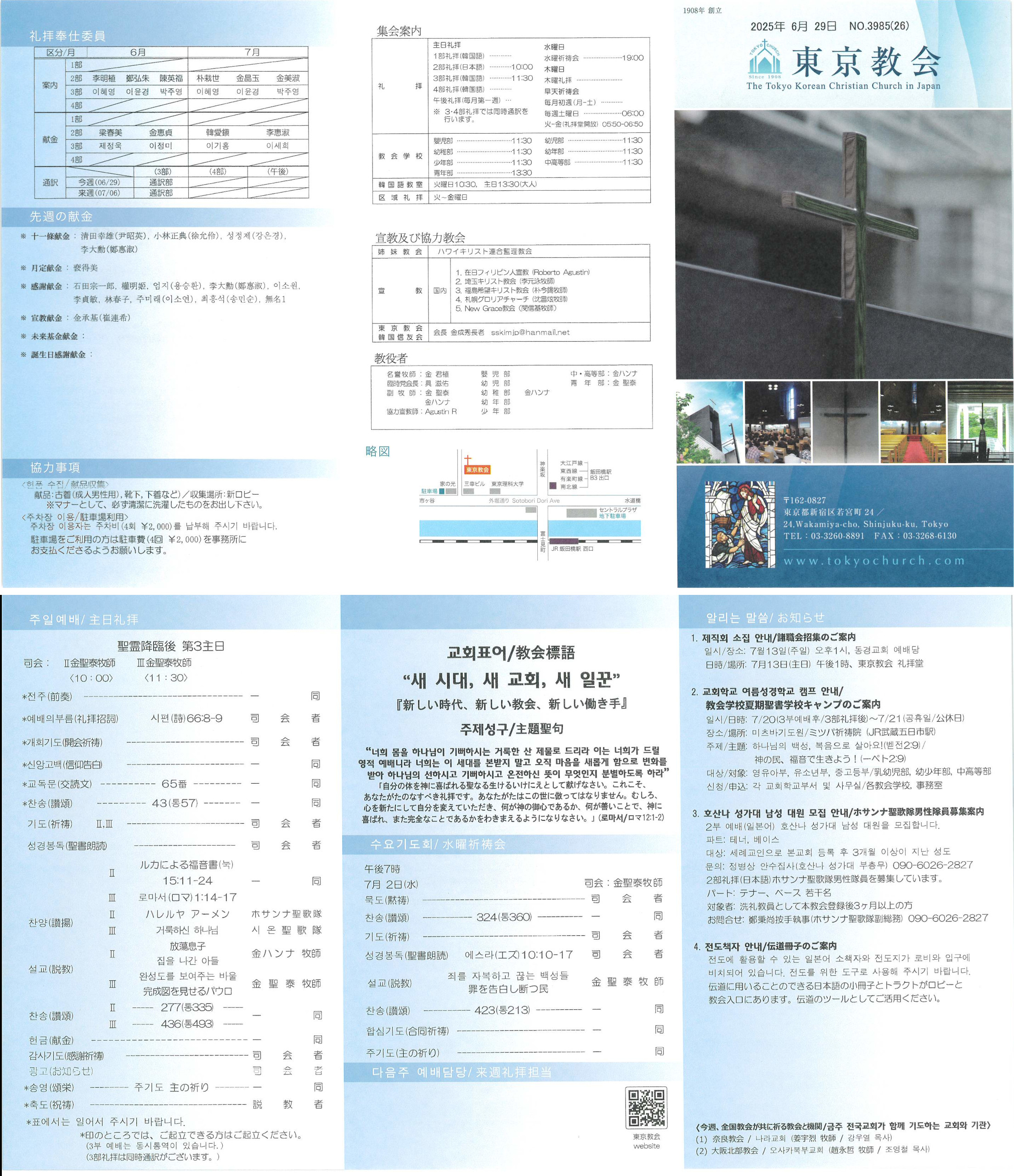 일시/장소: 7월13일(주일) 오후1시, 동경교회 예배당