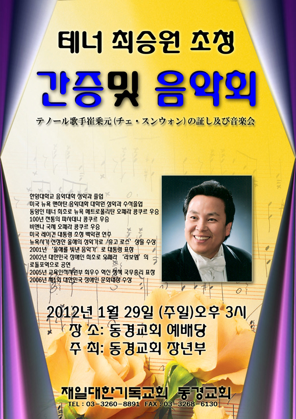 테너 최승원 초청 간증 및 음악회